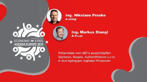 Potenziale von eID’s ausschöpfen – Signieren, Siegeln, Authentifizieren u.v.m. in durchgängigen digitalen Prozessen. Ing. Nikolaus Proske (d.velop), Ing. Markus Stangl (A-Trust).